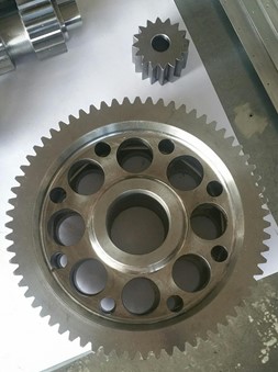 Figura.3. (A SINISTRA) Pignoni alberati con rapporto 6.7:1. (A DESTRA) ruota condotta con rapporto 3.94:1.