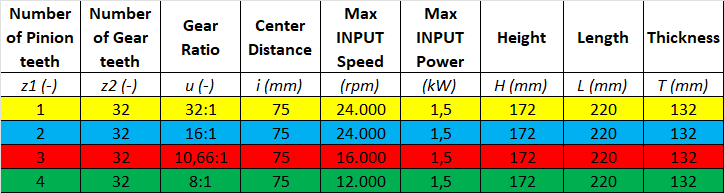 In Tabella 1 si riassumono i principali parametri di alcuni riduttori sviluppati da GearUp s.r.l.